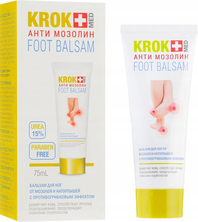 Balsam KROKMED Antimozolin zmiękcza szorstką skórę i ułatwia usuwanie zrogowaceń.