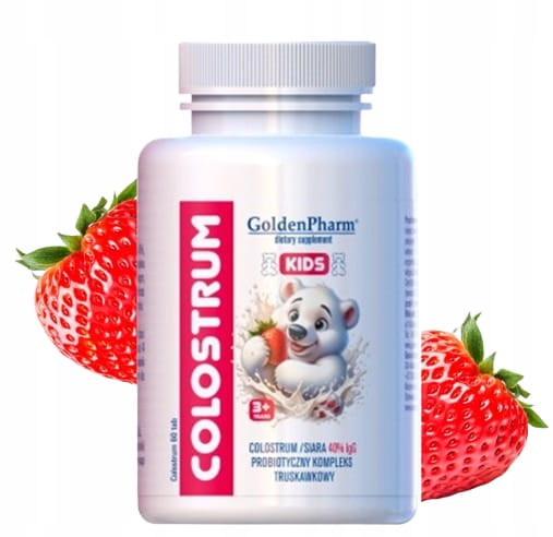 Colostrum kids dla dzieci truskawkowe cukierki siara 40%igg probiotyk 60szt