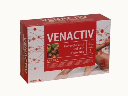 1 ampułka zawiera: kasztanowiec (zawierający co najmniej 20% escyny) 350mg, Centella azjatycka (wąkrota azjatycka) ( zawierająca co najmniej 20% azjatykozydu) 200mg, ruszczyk kolczasty (zawierający co najmniej 20% ruskogeniny) 40mg, czerwona winorośl (zawierająca co najmniej 95% polifenoli) 100mg, Witamina C 80mg (100%RWS*)