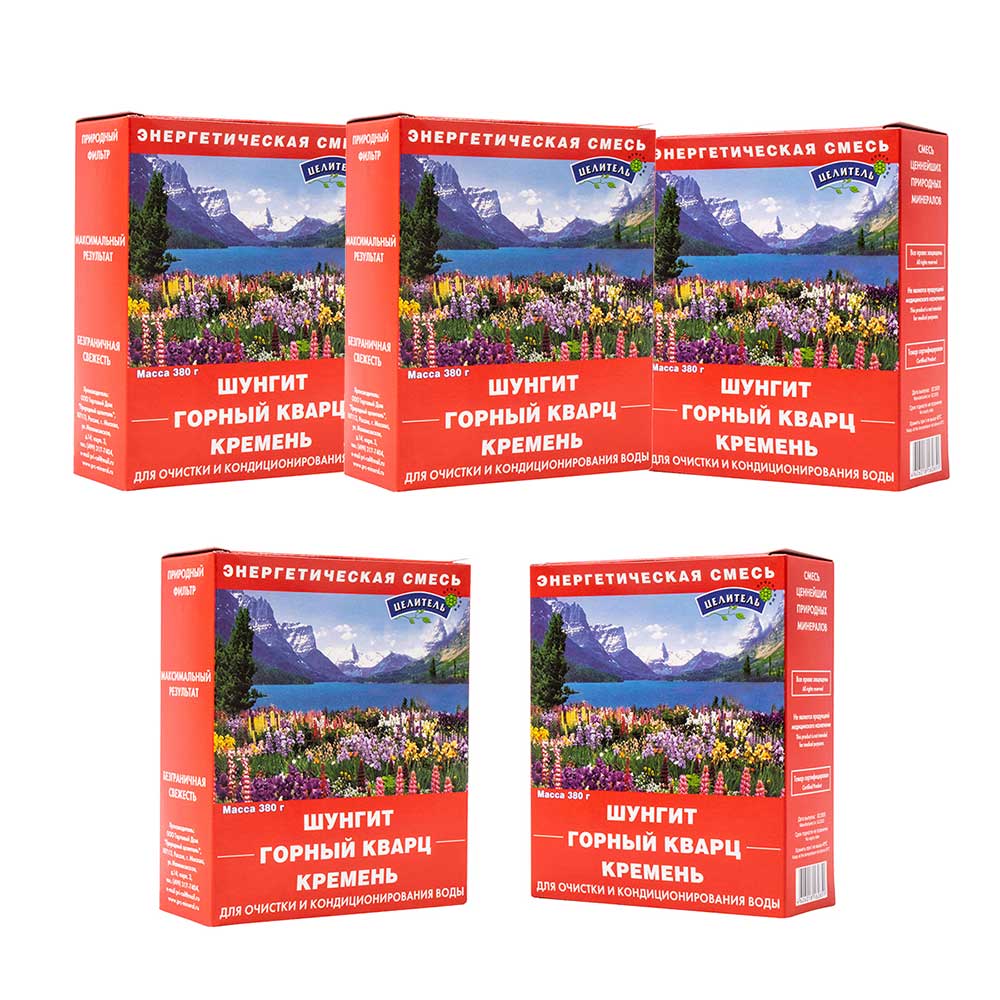 Zestaw pięciu opakowań Energetycznej Mieszanki to idealna propozycja dla osób, które dbają o systematyczne uzdatnianie wody dla całej rodziny lub szukają ekonomicznego zapasu na dłuższy czas. Każde opakowanie zawiera unikalny kompleks trzech najstarszych minerałów naszej planety: szungitu, kwarcu górskiego oraz krzemienia. Synergia tych składników pozwala na uzyskanie w warunkach domowych wody o parametrach zbliżonych do krystalicznie czystej, naturalnie miękkiej wody lodowcowej.