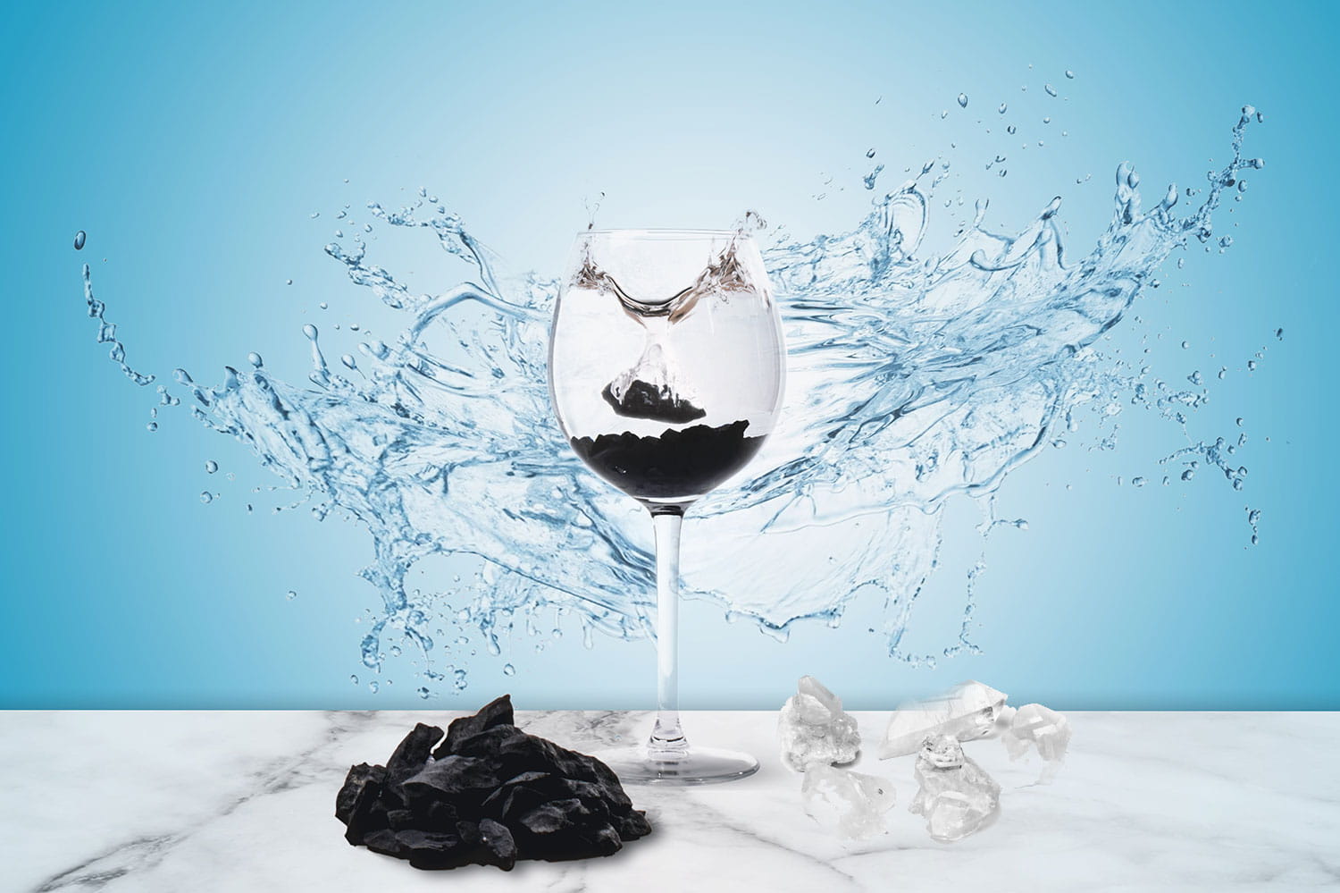 Kwarc Górski: Odpowiada za harmonizację wody. Nadaje jej strukturę naturalnie stopionej wody lodowcowej, która jest najlepiej przyswajana przez ludzkie komórki i niezwykle łagodna dla organizmu.
